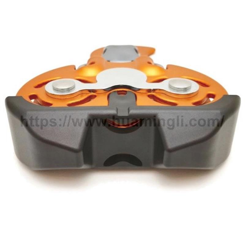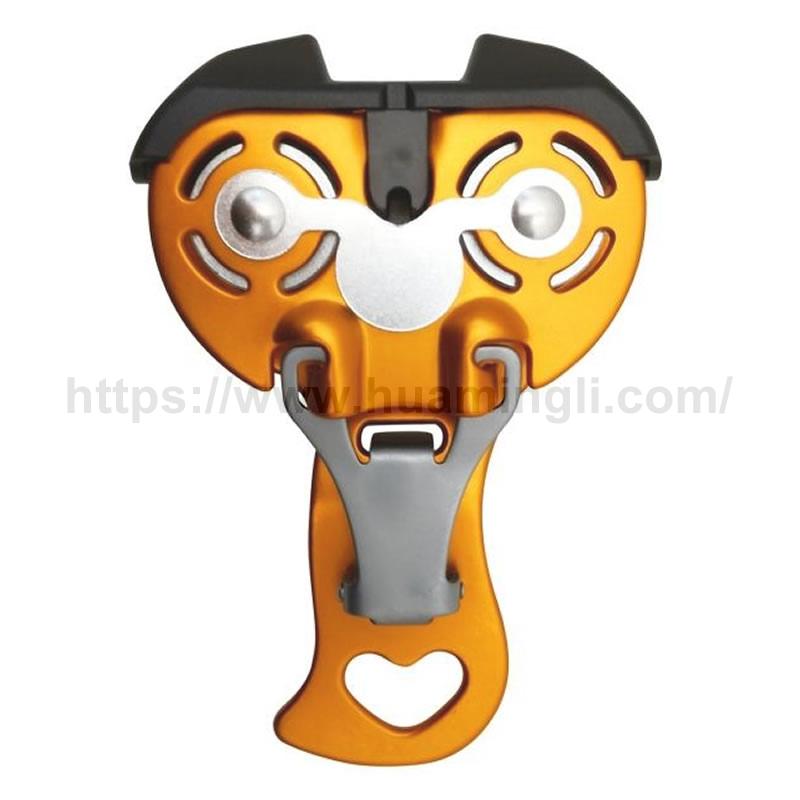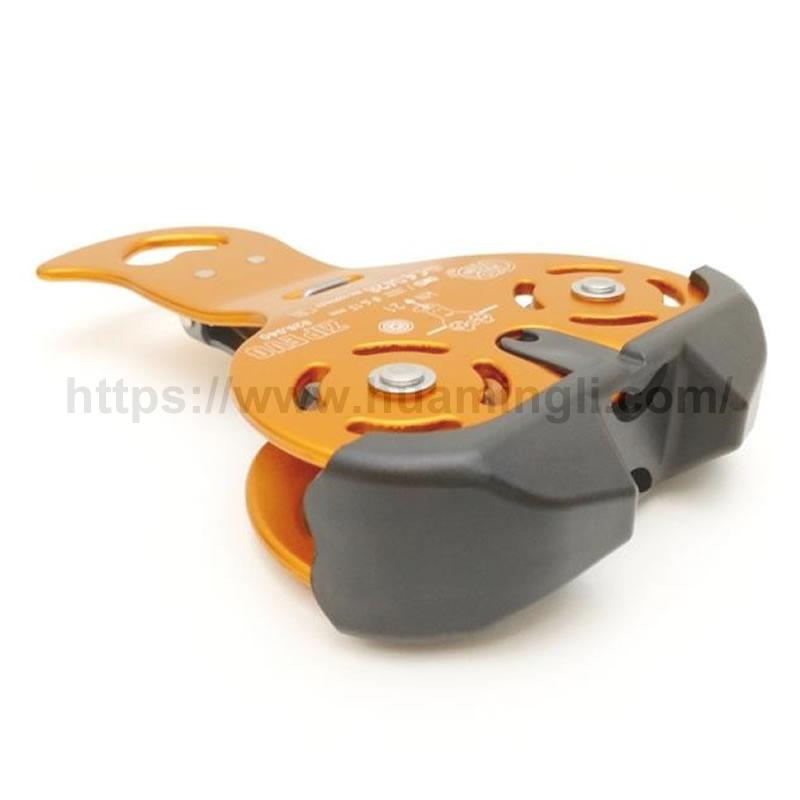 双滑轮,手柄可单手操作,方便挂取滑轮,可用CLACK方便地与安全带连接,材质:主体-铝合金,滚轴-钢