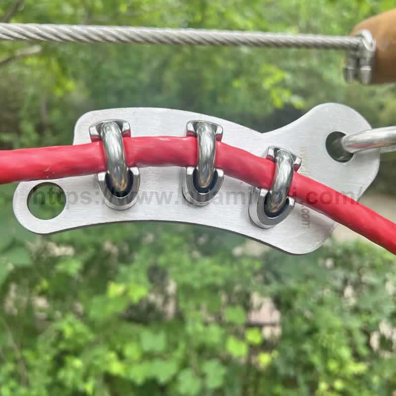 冒险公园建设锁扣连续保护系统,节省安全人员成本,并为探险公园的打造提供了基础性的安全保障,主要提供生命线系统中用到的关卡连接板、溜索连接板、步梯连接板及线路分叉器等配件,可根据客户需求量身定制。