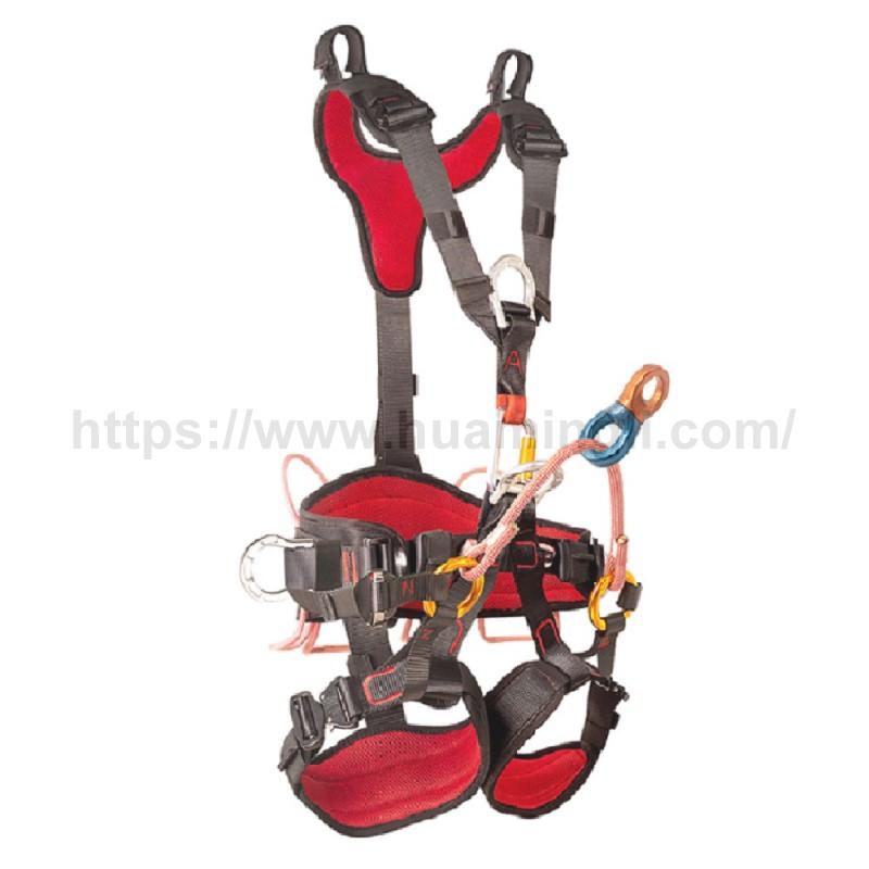 腿部航空铝合金快插扣设计,穿戴方便,轻量且保证安全性;所有挂点均使用铝合金材质,轻量高强;护肩、护腿、护腰采用硬挺透气EVA材质,适合长时间穿戴;多个多方位装备环,方便随时拿取装备;可加装胸式上升器;采用EN1891标准静力绳做“桥”,低延展且耐磨;高强锻造铝合金万向节,轴承顺滑旋转流畅防扭绳;背后、肩部、腰部、腿部均可调节;