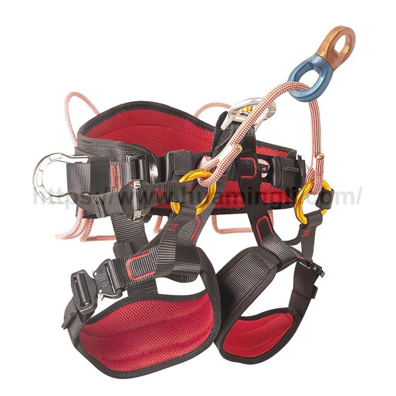 腿部航空铝合金快插扣设计,穿戴方便,轻量且保证安全性;所有挂点均使用铝合金材质,轻量高强;护腿、护腰采用硬挺透气EVA材质,适合长时间穿戴;多个多方位装备环,方便随时拿取装备;采用EN1891标准静力绳做“桥”,低延展且耐磨;高强锻造铝合金万向节,轴承顺滑旋转流畅防扭绳;腰部、腿部均可调节;