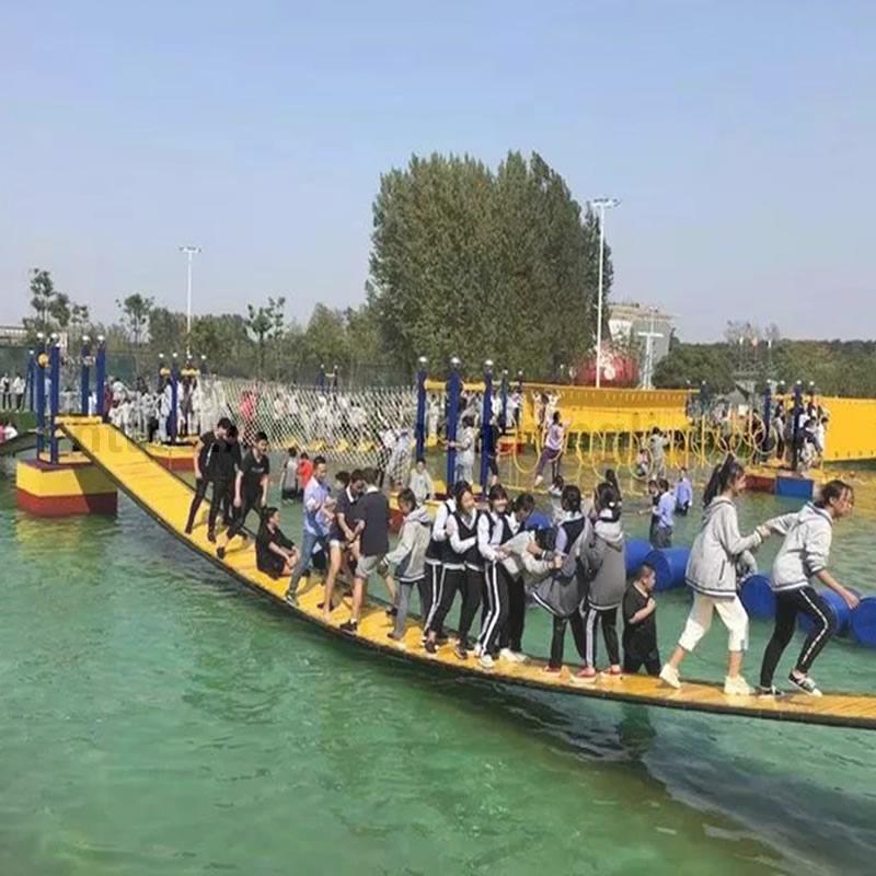 水上拓展是借助旅游景区现有的自然水面设计缅甸桥、飞檐走壁、抽板过河、飞夺泸定桥、滑索过涧、水上飞、携手并进、高空溜索、浮桩桥、荡绳过河、凌空漫步等各种供游客挑战趣味性的水上游玩项目。也可以利用固定的水域加入水战题材,巧妙地加入各种关卡障碍项目,让游客进行闯关挑战,让您在享受快乐的同时增加了平衡、跨越、挑战、胆量等能力的锻炼。全程安全保护装备不离您身,在尽情娱乐过程中,乐趣无穷、激情绽放,安全始终伴随您左右,让您没有后顾之忧。