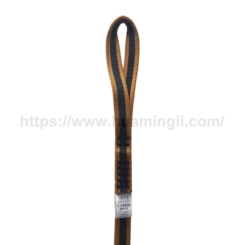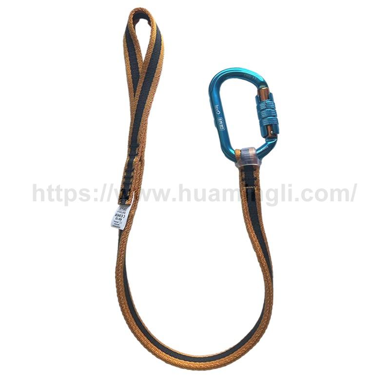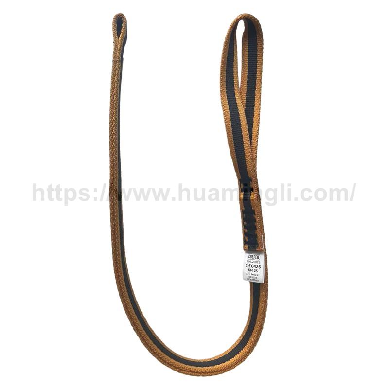 冒险公园专用单眼扁带,配有一个大套环,可通过狼口结将其固定在安全带上,用于连接安全带与不间断锁,使用时需搭配固定橡圈及阻挡棍将其固定。单个尼龙挂绳适合。
