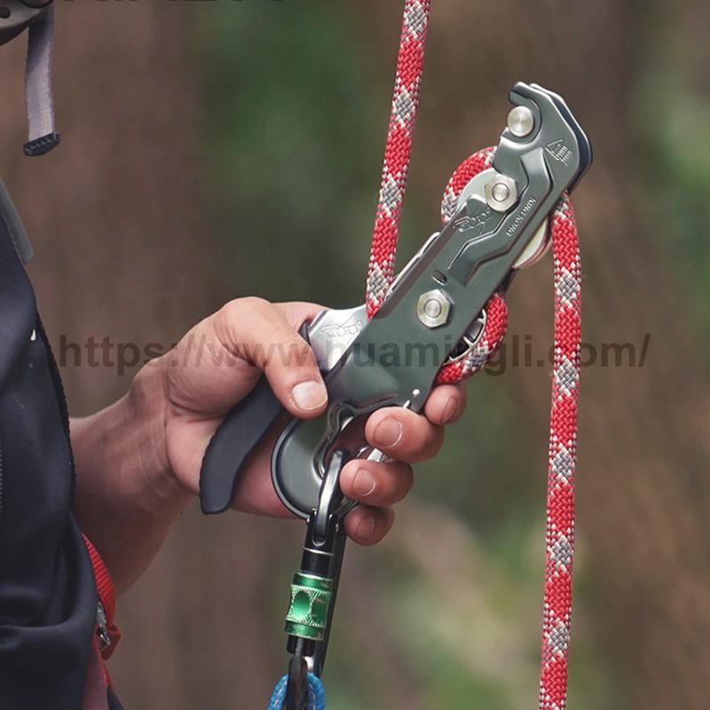 采用铝镁合金材质,重量轻,强度高,便携等特点;制停轴与手柄配合,能于手柄力度配合掌控下降速度,防慌乱设计;内部凹槽设计,下降时绳索摩擦发热时可有效散热,降低绳索损耗;手柄采用人体力学设计,紧握制停防慌乱。材质:7075铝合金;