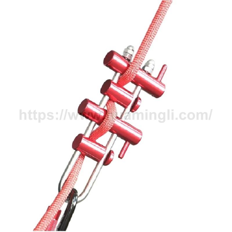 长距离下降器和绳索摩擦产生的热量会快速散去,避免高温对绳索的损害;单向绳索的安装,避免绳索的扭曲或缠绕;可以根据需求调节绳索上扣板的数量。以达到调整摩擦力和下降速度的目的;增加设计有绳索制停挂止头,可以实现在绳索上长、短时间制停;适用于9至13毫米直径的单或双绳。